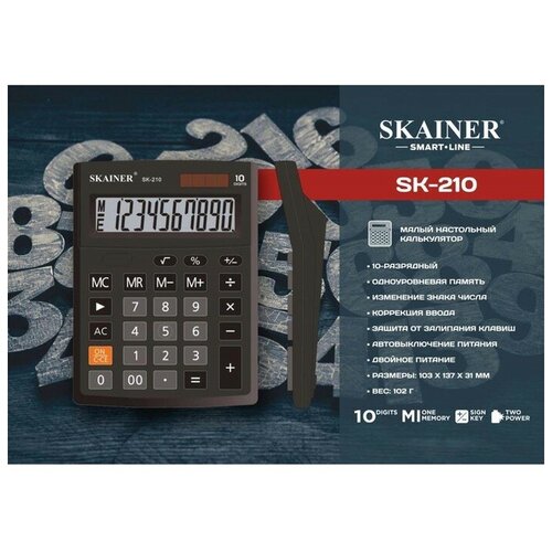 Калькулятор настольный малый, 10-разрядный, SKAINER SK-210, 2 питание, 103 x 137 x 31 мм, черный