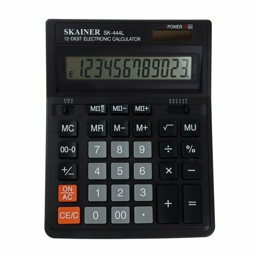 Калькулятор настольный большой 12-разрядный, SKAINER SK-444L, двойное питание, двойная память, 159 x 205 x 32 мм, чёрный