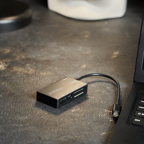Мульти Картридер All-in-1, внешний, 6 слотов для типов карт: SD, MicroSD, MMC, xD, M2, MS Duo, CF, USB 2.0, черный