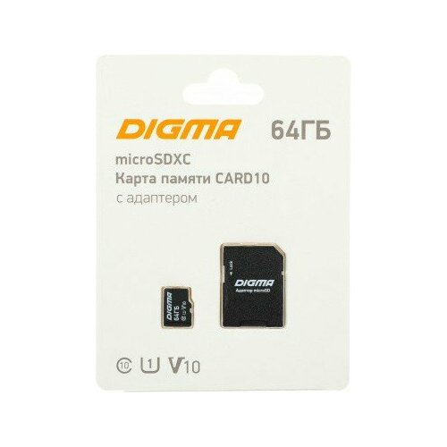 Карта памяти Digma microSDXC 64Gb Class10 CARD10 + adapter DGFCA064A01