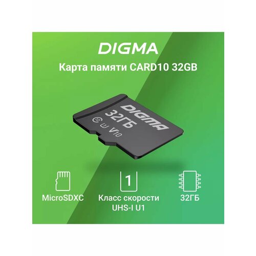 Артикул № 981834 Карта памяти Digma емкостью 32 ГБ позволяет хранить в планшете или смартфоне нужные документы, приложения, аудио- ...