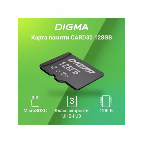 Карта памяти microSDXC UHS-I U3 Digma 128 ГБ, 90 МБ/с, Class 10, CAR
