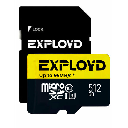 Карта памяти EXPLOYD microSDXC 64 ГБ Class 10, UHS Class 1, R 80 МБ/с, адаптер на SD