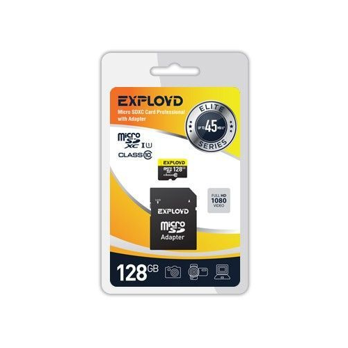 Карта памяти 128Gb - Exployd Micro Secure Digital XC Class 10 UHS-1 Elite EX128GCSDXC10UHS-1-ElU1 с переходником под SD (Оригинальная!)