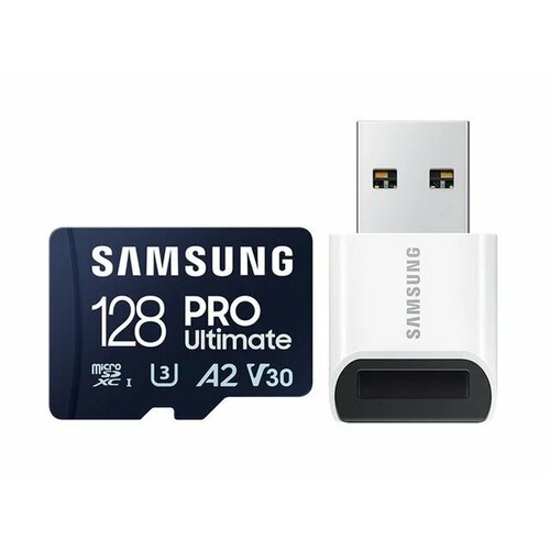 Карта памяти MicroSDXC Samsung Pro Ultimate - 128 Гб - 200/130 МБ/c + картридер