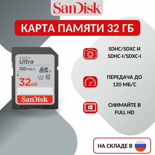 Карта памяти SanDisk SDHC 32 ГБ Ultra Class 10 UHS-I, 120 Мб/с