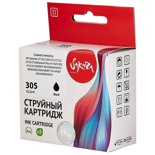 Струйный картридж Sakura 3YM61AE (№305 Black) для HP, черный, 10,6 мл, 240 к.