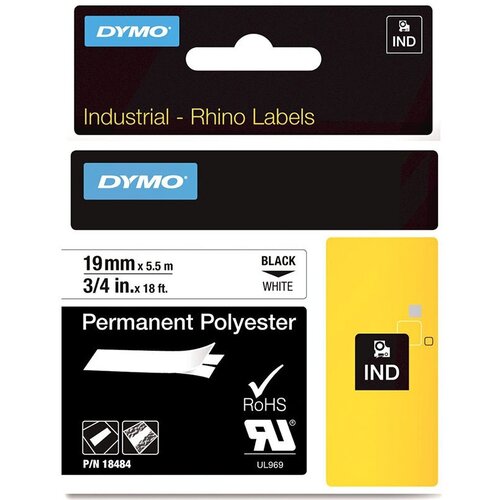 Лента полиэстровая Dymo, для принтеров Rhino, шрифт, 5.5 м х 19 мм, белая Белый