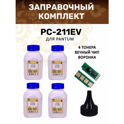Заправочный комплект GalaPrint PC-211EV вечный ЧИП + тонер 65гр 4 шт + воронка