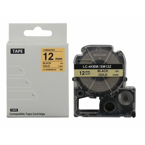 Картридж BYZ LC-4KBM/SM12Z с термолентой для принтеров Epson, 12 мм, 8 м, черный на золотистом