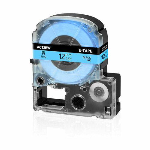 черныйКартридж ленточный для принтеров Epson серии LW, длина — 8 метров, белый текст на голубой ленте, ширина ленты 12 мм. совместимый с моделями принтеров для этикеток Epson LW-300, LW-400, LW-K600, LW-600P, LW-700, LW-Z700, LW-Z900, LW-1000P ELW-9000K, ELW-O