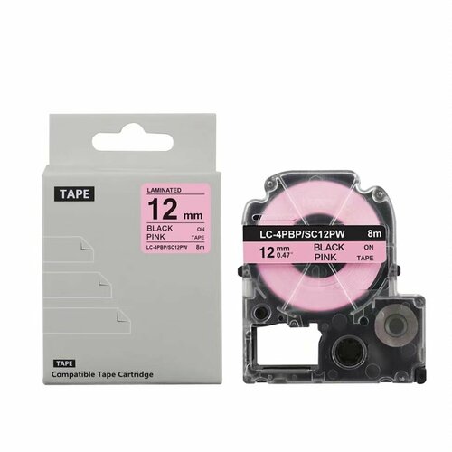 Картридж BYZ LC-4PBP / SC12PW с термолентой для принтеров Epson, 12 мм, 8 м, черный на розовом