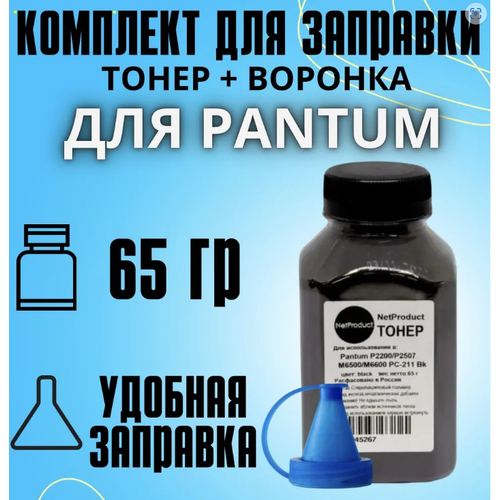 Комплект для заправки PC-211EV тонер NetProduct PC-211/PC-212 Pantum + воронка, P2200, P2207, P2507, P2500W, 65 гр.