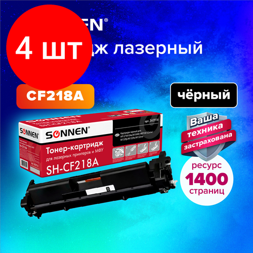 Комплект 4 шт, Картридж лазерный SONNEN (SH-CF218A) для HP LaserJet M132/M104, высшее качество, ресурс 1400 стр, 362916