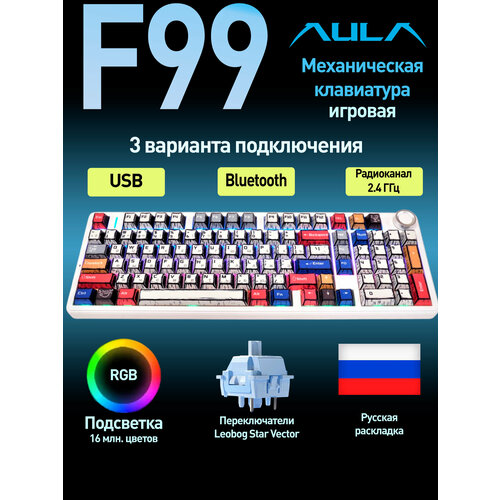 Клавиатура AULA F99 PRO Comics Leobog Star Vector Switch (1660) разноцветный/белый Кириллица USB, Радиоканал, Bluetooth