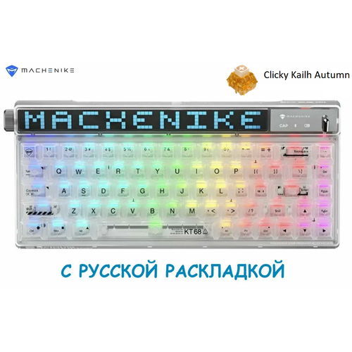 MACHENIKE KT68 Pro Ослепительная Трехрежимная беспроводная механическая клавиатура, Русская раскладка, Clicky Kalih Autumn