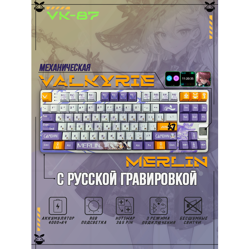 Механическая игровая беспроводная клавиатура VALKYRIE VK87-Merlin. Бело-фиолетовая. Русская раскладка