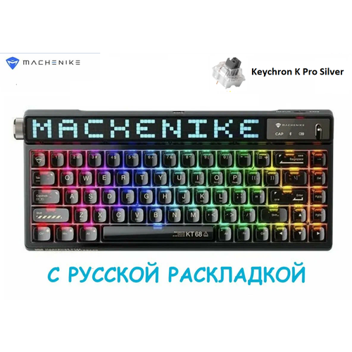 MACHENIKE KT68 Pro Ослепительная Трехрежимная беспроводная механическая клавиатура, Русская раскладка, черная, Keychron K Pro Silver