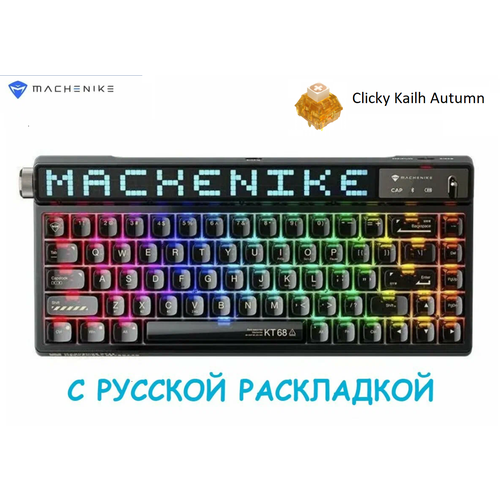 MACHENIKE KT68 Pro Ослепительная Трехрежимная беспроводная механическая клавиатура, Русская раскладка, черная, Clicky Kalih Autumn