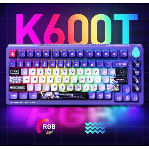 Трехрежимная проводная + 2.4G + BT беспроводная механическая клавиатура Mechanike K600T, Английская раскладка, фиолетовая