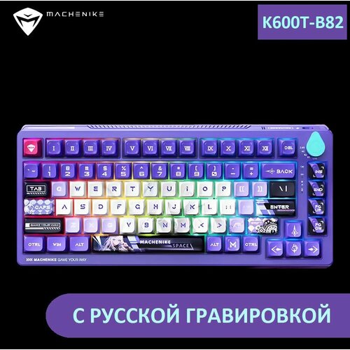 Трехрежимная проводная + 2.4G + BT беспроводная механическая клавиатура Mechanike K600T, Русская раскладка, фиолетовая