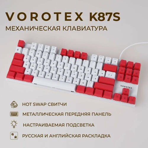 Игровая клавиатура VOROTEX K87S Red Switch, белый/черный, английская/русская (ANSI)