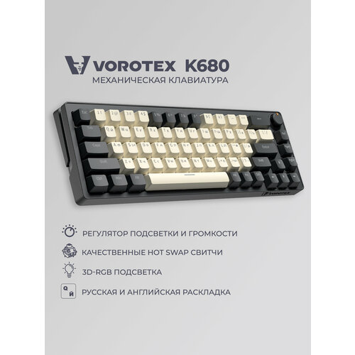 Клавиатура игровая проводная VOROTEX K680 Yellow Switch (Темно-серый, кремовый)