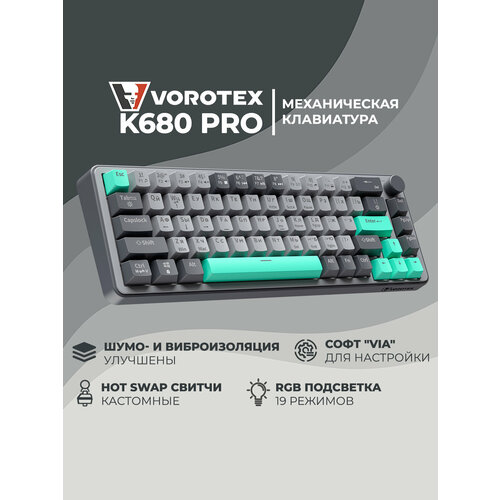 Клавиатура игровая проводная VOROTEX K680 PRO, HUANO Matcha Latte Switch (Графит)