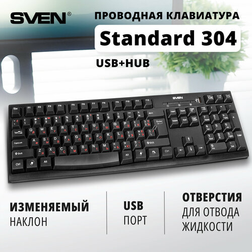 Клавиатура SVEN Standard 304 USB+HUB Black USB, русская, 1 шт.