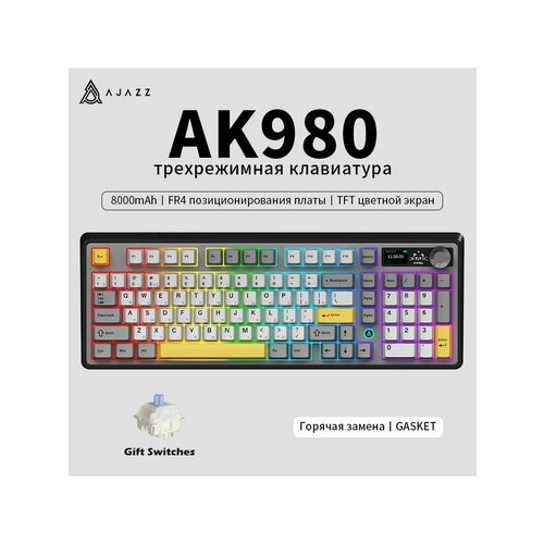 AJAZZ AK980 Механическая клавиатура трехрежимная, беспроводная игровая с экраном, 2.4g/Bluetooth/проводное подключение