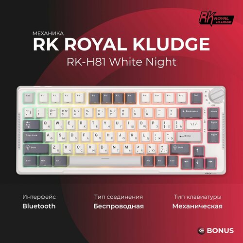 Клавиатура Royal Kludge RK-H81 White Night (switch RK Sky Cyan, USB/2.4 GHz/Bluetooth, 81 клавиша, Gasket Mount)