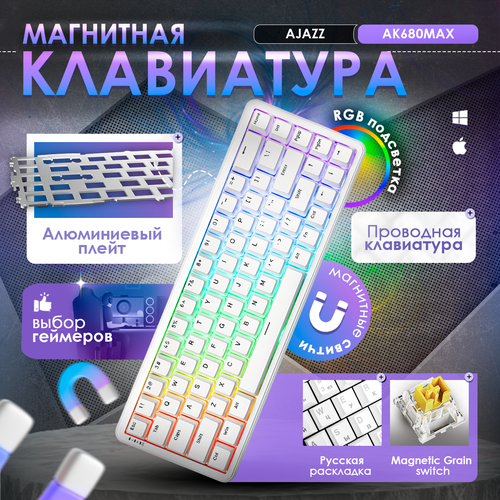 Магнитная игровая проводная клавиатура AJAZZ AK680 MAX Magnetic Grain Switch с подсветкой RGB и алюминиевым плейтом