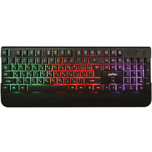 Клавиатура Perfeo "BRIGHT", игровая, проводная, мембранная, 104 клавиши, USB, чёрная