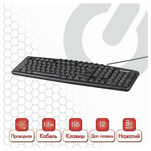 Клавиатура SONNEN KB-7010 Black USB черный, русская, 1 шт.
