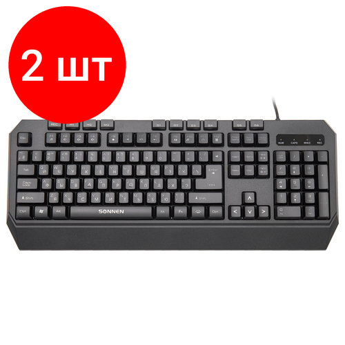 Комплект 2 шт, Клавиатура проводная игровая SONNEN KB-7700, USB, 104 клавиши + 10 программируемых клавиш, 3 режима подсветки, черная,513512