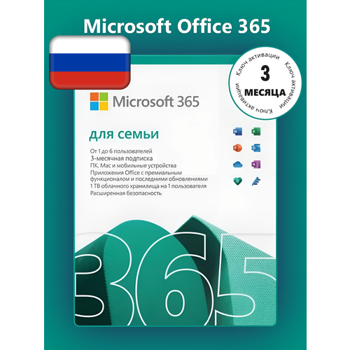 Microsoft Office 365 для семьи (3 месяца / ключ привязывается к учетной записи / VPN не нужен / Россия и СНГ)