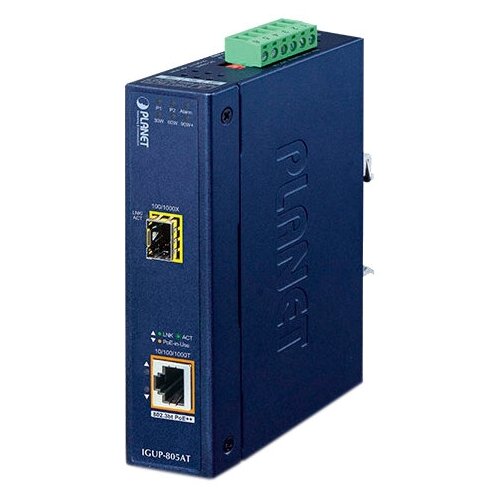 Медиа конвертер/ PLANET IGUP-805AT Industrial 1-Port 100/1000X SFP to 1-Port 10/100/1000T 802.3bt PoE++ Media Converter (802.3bt Type-4, PoH, Legacy