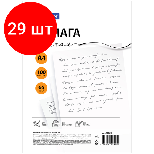 Комплект 29 шт, Бумага писчая OfficeSpace, А4, 100л, 65г/м2, 146%