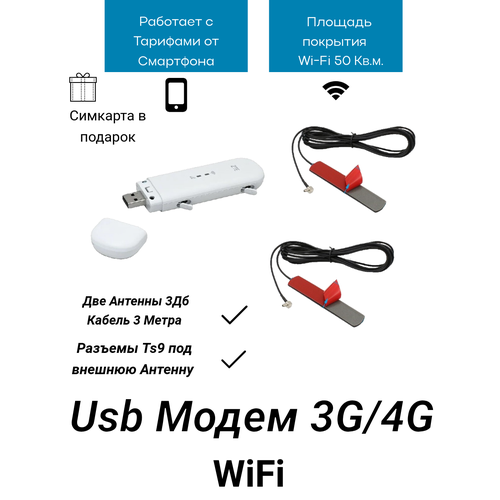 Zte MF79u TTL Smart 3G/4G WiFi 2*TS9 с двумя антеннами 3Дб Кабель 3 метра