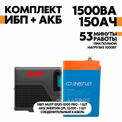 Резервный ИБП Must EP20-1000 PRO в комплекте с аккумулятором Энергия АКБ 12-150 12V 1000 Вт/150 А*Ч