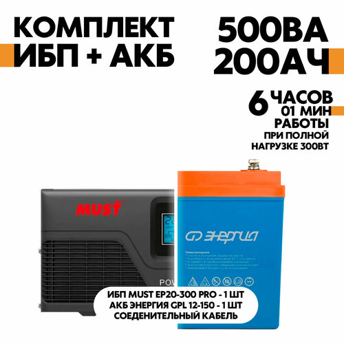 Интерактивный ИБП MUST EP20-300 PRO 12В, 300Вт в комплект с АКБ Энергия GPL 12-150