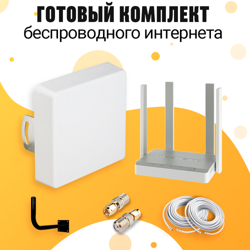 Характеристики комплекта:- Комплект Универсальный и работает со всеми операторами: МТС Теле2 Мегафон Билайн Ростелеком Тинькофф Летай Волна Феникс 7 Телеком Yota Wifire и другие.- Усиление внешней Антенны 21дб с приемом сигнала до 20Км от Базовой Станции оператора- Тип сети 4G Интернета LTE CAT7 со скорость до 300