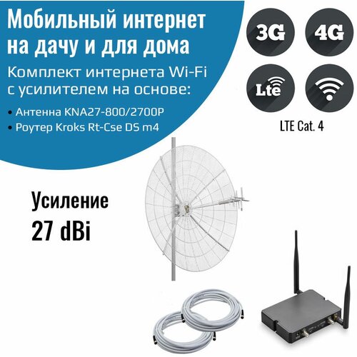 Мобильный интернет на даче, за городом 3G/4G/WI-FI – Комплект роутер Kroks m4 с антенной KNA27-800/2700P