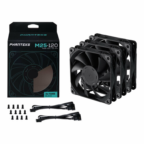 Комплект вентиляторов (3шт.) PHANTEKS M25 Black 120x120x25мм (PWM, 20шт./кор, 500-2000 об/мин, 35.7dBa) / PH-F120M25_PWM_BBK01_3P_RU