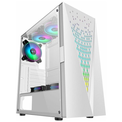 Корпус Ginzzu V570 ATX кубик, закаленное стекло, RGB подсветка, система охлаждения CRC10 + 4 RGB вентилятора