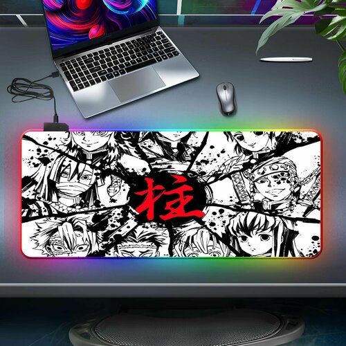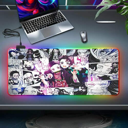 Компьютерный коврик для мышки с RGB Led-подсветкой с аниме принтом с персонажами Танджиро, Незуко, Мицури, Шинобу, Зеницу, Иноске, ...