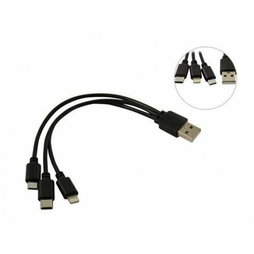 Кабель зарядка KS-IS KS-478B-0.2 USB 3 в 1 USB-C/Lightning/microUSB 20см черный (KS-478B-0.2)