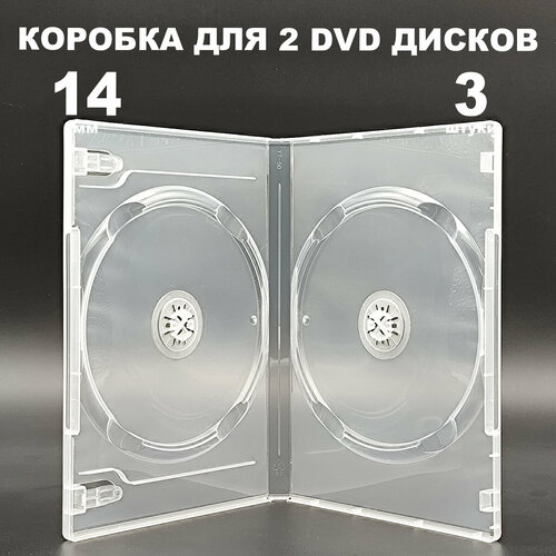Коробка DVD на 2 диска / Бокс DVD на 2 диска прозрачный, 14мм, упаковка 3 штуки