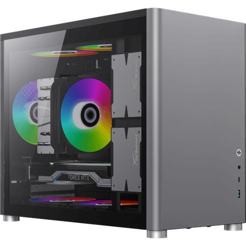 Корпус Ginzzu V570 ATX кубик, закаленное стекло, RGB подсветка, система охлаждения CRC10 + 4 RGB вентилятора