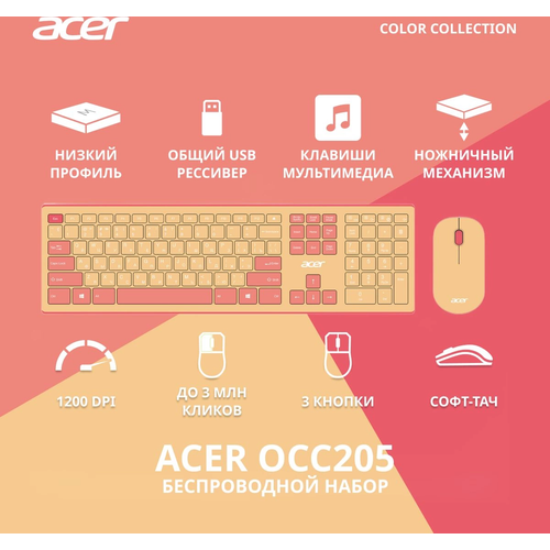 Комплект (клавиатура+мышь) Acer OCC205, USB, беспроводной, [zl. accee.00c]